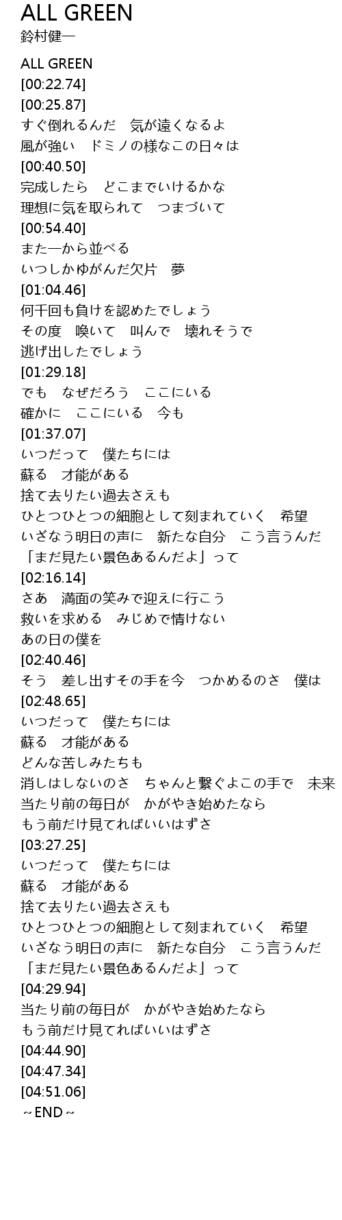 | [04:06.70] | ひとつひとつの細胞として刻まれていく 希望 |