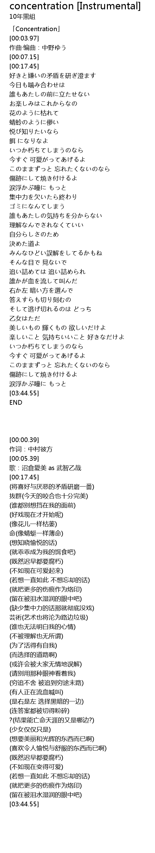 | [00:00.39] | 「Concentration」 |