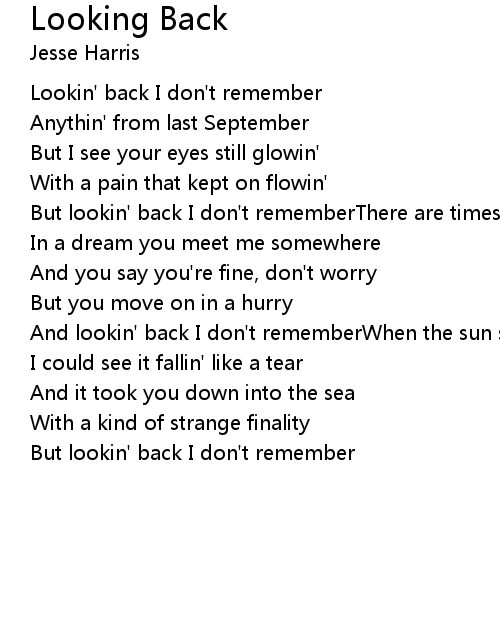 | But lookin' back I don't remember |