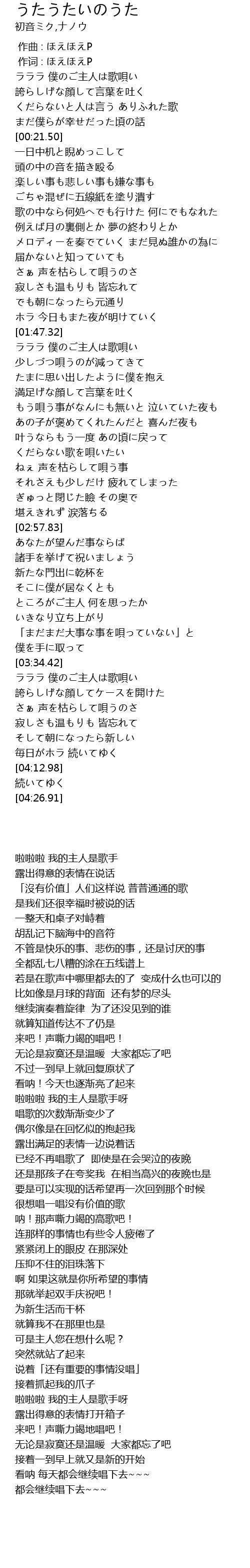 | [00:00.334] | 作词 : ほえほえP |