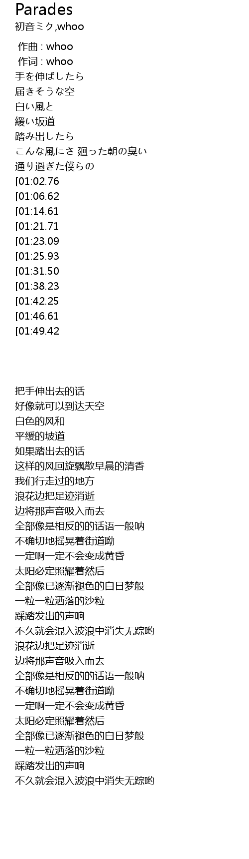 | [03:57.47][01:49.42] | やがて波に紛れて消えていってしまうよ |