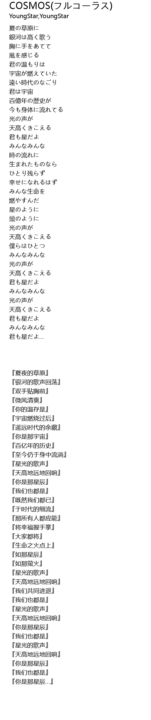 | [00:55.55] | 宇宙が燃えていた |