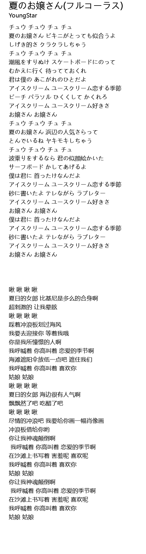 | 歌曲 | 夏のお嬢さん(フルコーラス) |