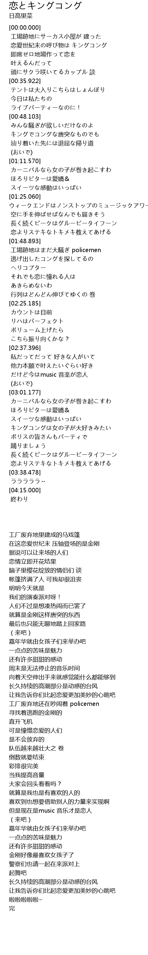 | [00:17.949] | 恋愛世紀末の呼び物は キングコング |