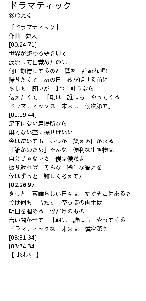 | [03:22.09] | ドラマティックな 未来は 僕次第さ」 |