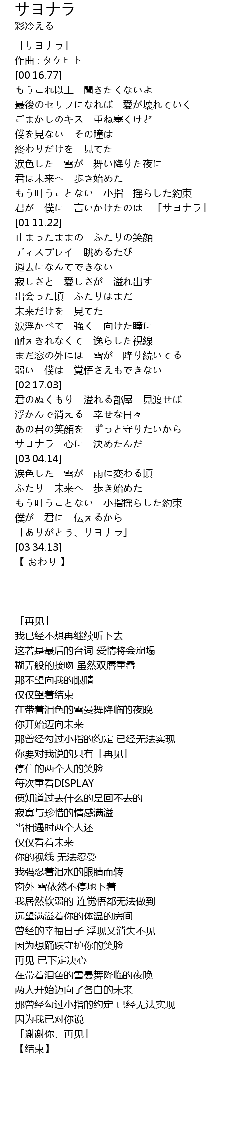 你要对我说的只有「再见」 |