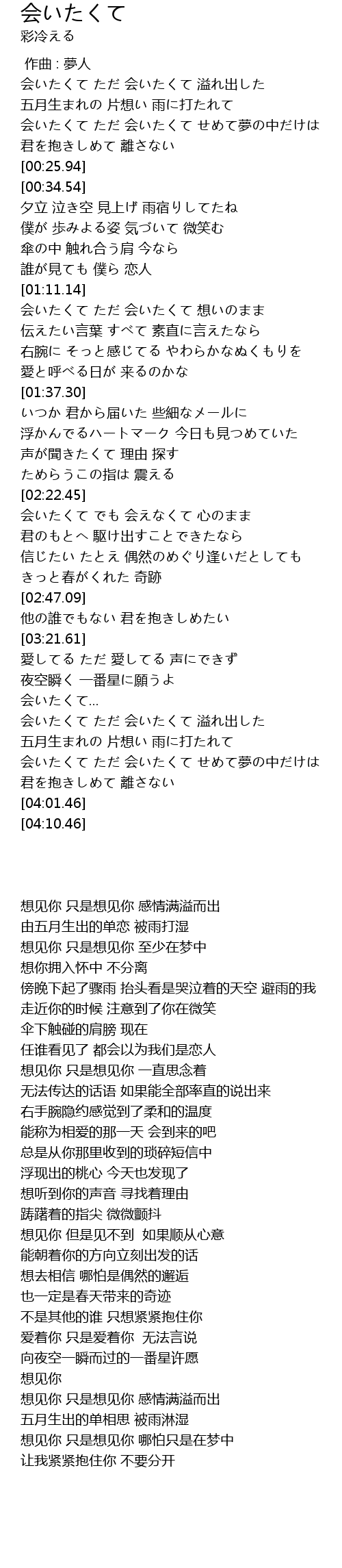 | [03:48.20] | 会いたくて ただ 会いたくて せめて夢の中だけは |