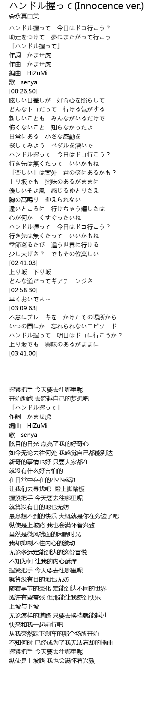 | [03:26.03] | 握紧把手 今天要去往哪里呢 |