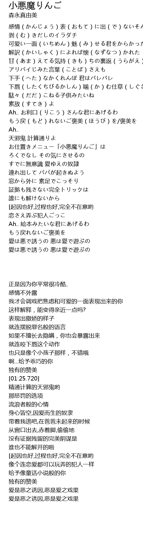 | [01:42.560] | お仕置きメニュー「小悪魔りんご」は |