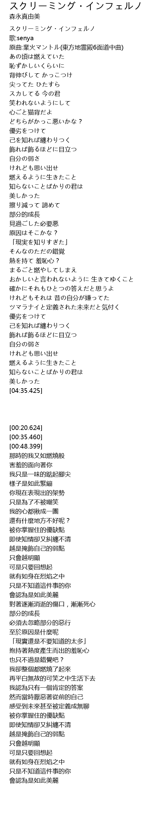 | [00:48.399] | 原曲:業火マントル(東方地霊殿6面道中曲) |