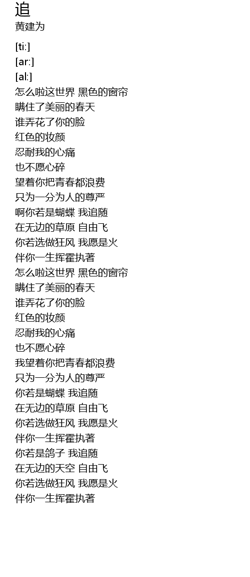 | [01:02.12] | 啊你若是蝴蝶 我追随 |