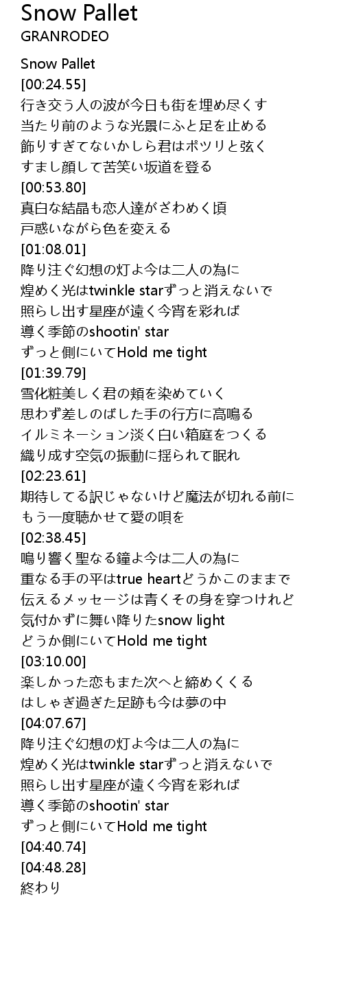 | [00:01.49] | Snow Pallet |