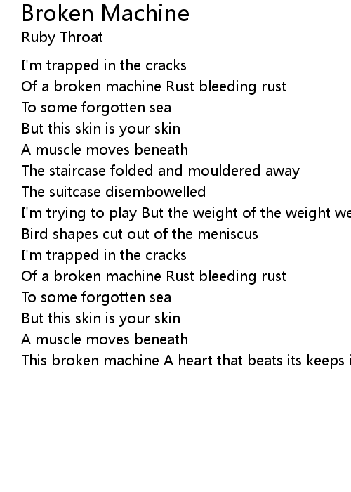 | This broken machine A heart that beats its keeps its beat |