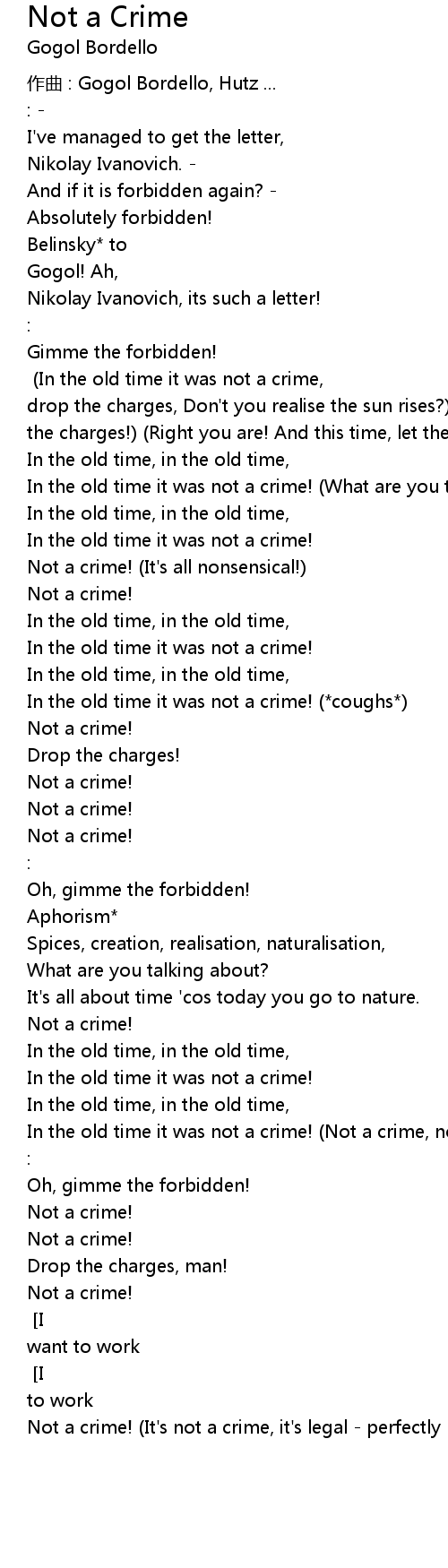 | In the old time it was not a crime! Not a crime, not a crime! | |