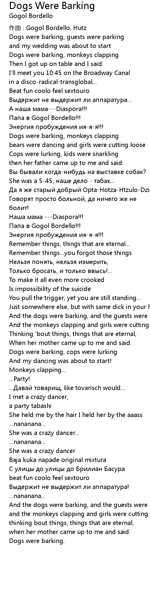 | 作曲 : Gogol Bordello, Hutz | |