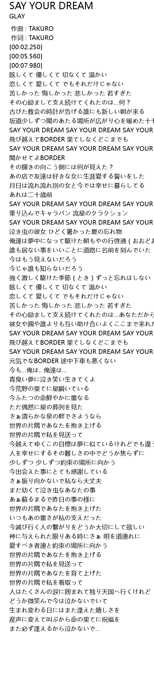 | [02:55.850] | SAY YOUR DREAM SAY YOUR DREAM SAY YOUR DREAM |