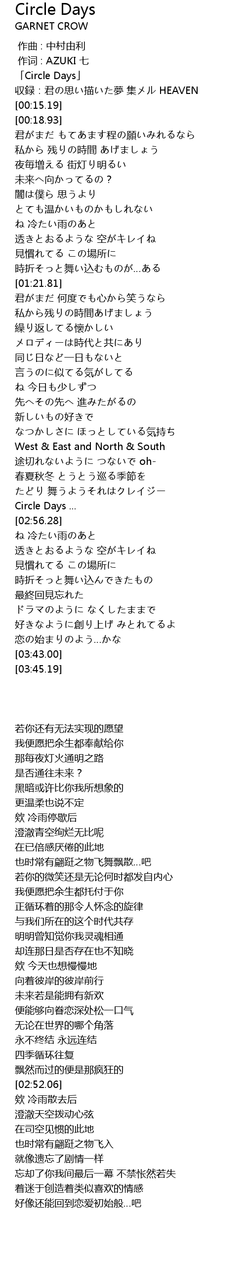 | [00:00.00] | 「Circle Days」 |