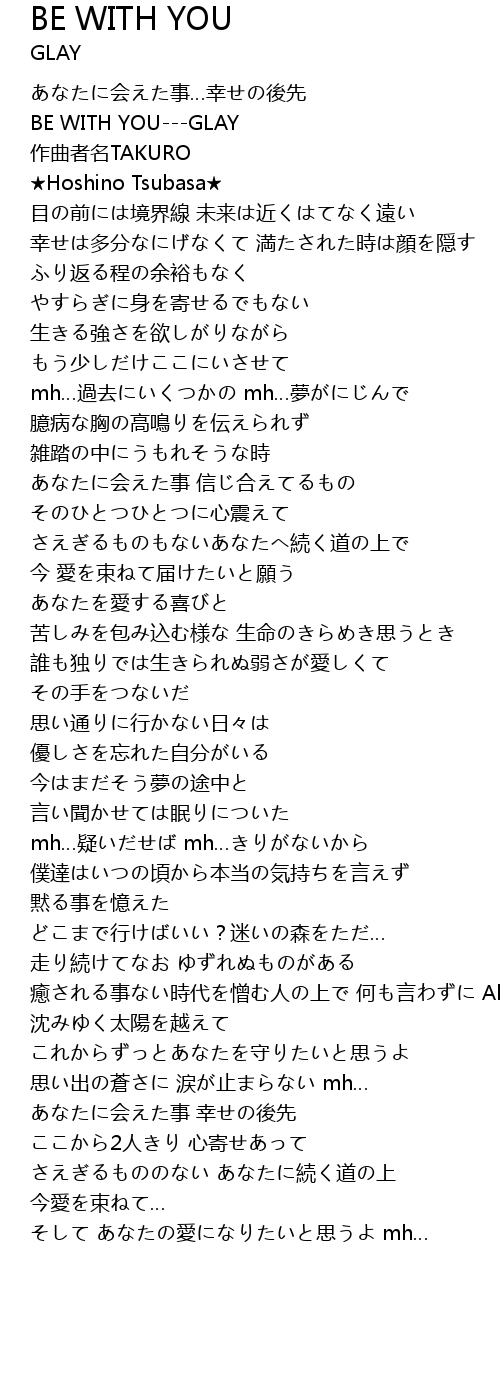 | [00:16.63] | BE WITH YOU---GLAY |