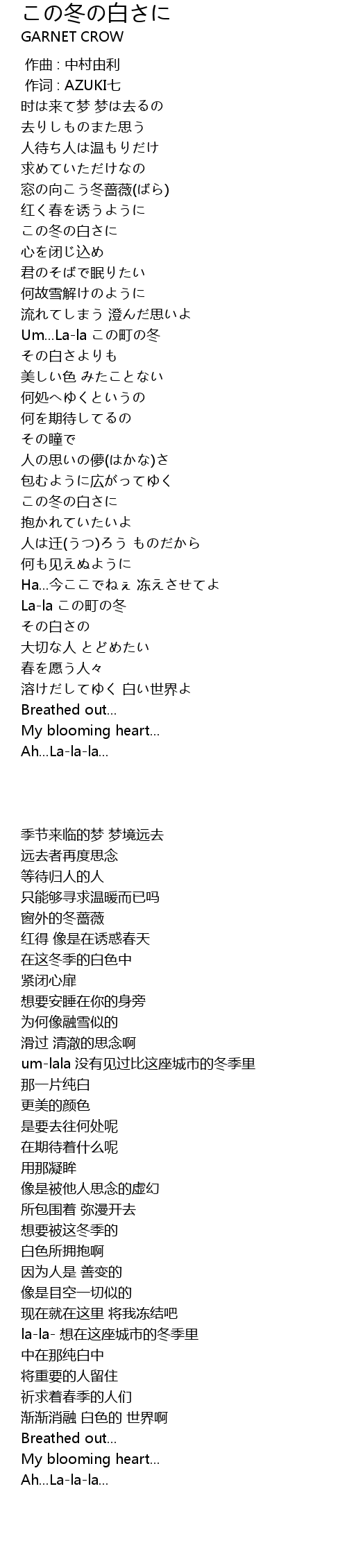 | 歌曲 | この冬の白さに |