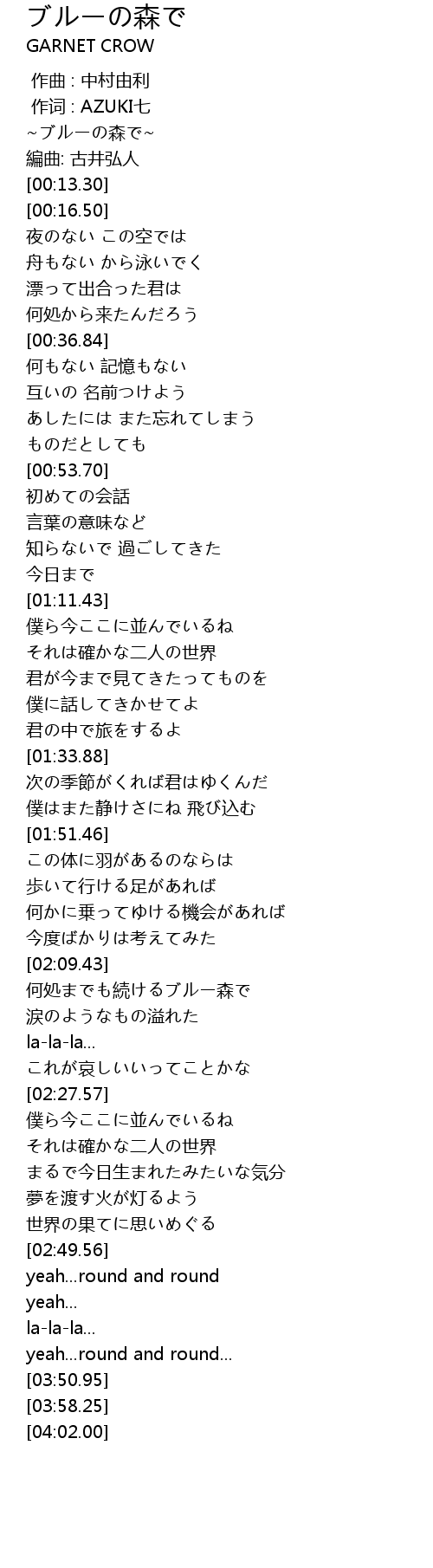 | [01:34.10] | 次の季節がくれば君はゆくんだ |