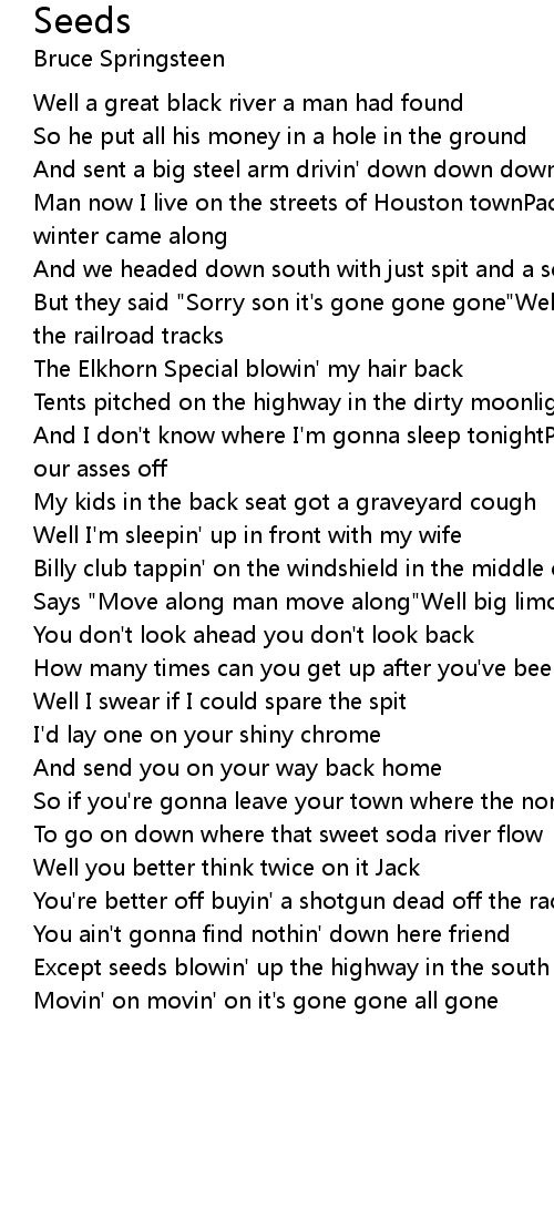 But they said "Sorry son it's gone gone gone"Well there's men hunkered down by the railroad tracks |