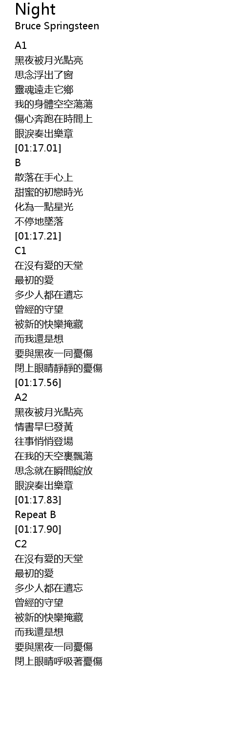 | [01:18.17] | 要與黑夜一同憂傷 |