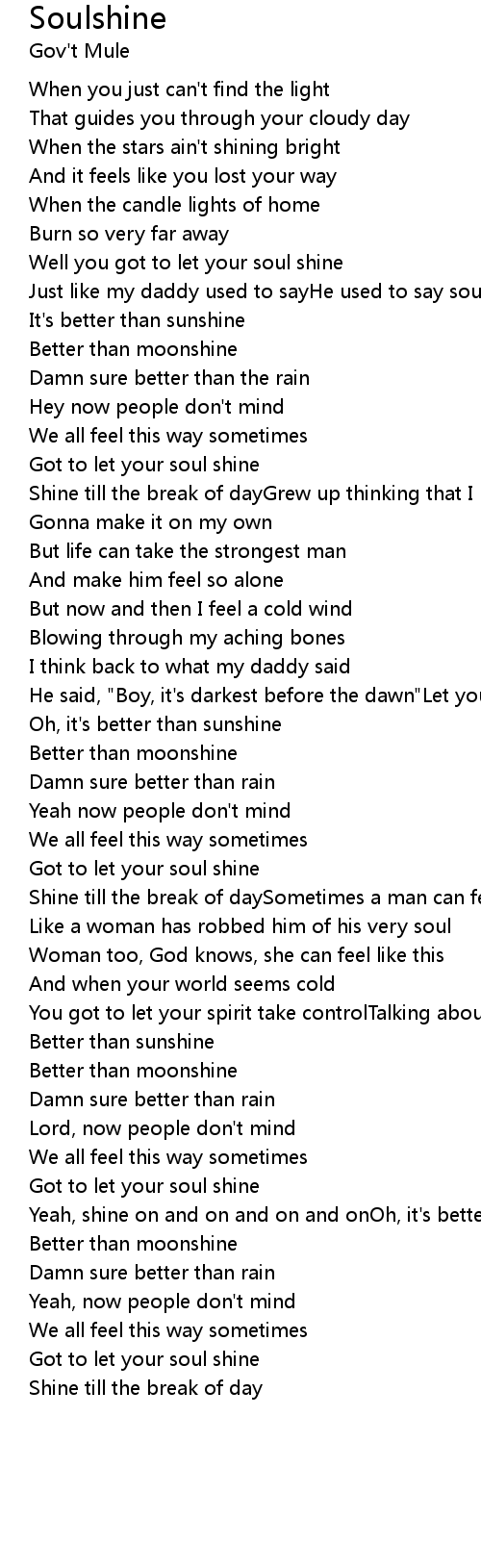 He said, "Boy, it's darkest before the dawn"Let your soul shine |