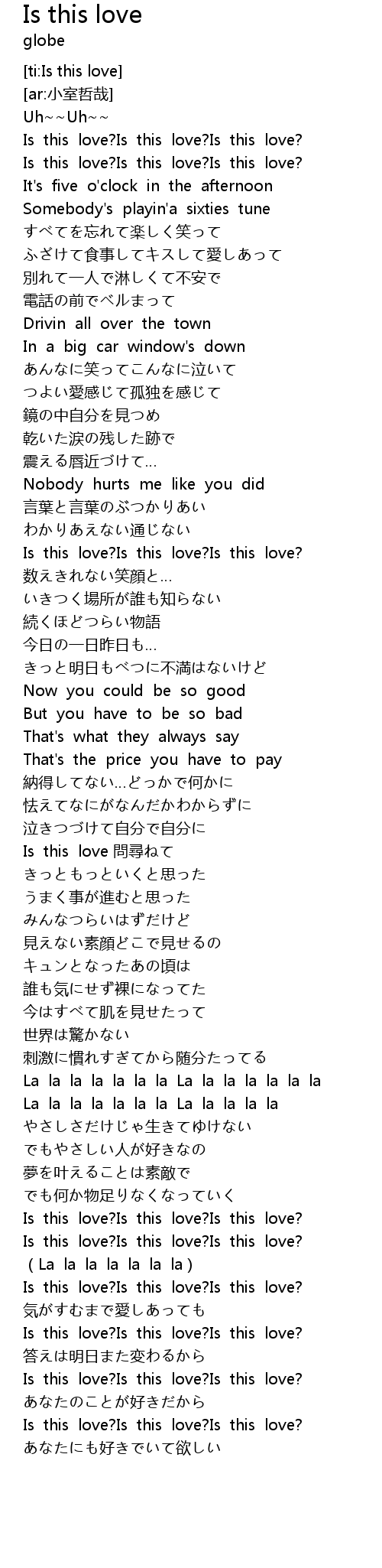 | [04:42.382] | Is this love?Is this love?Is this love? |