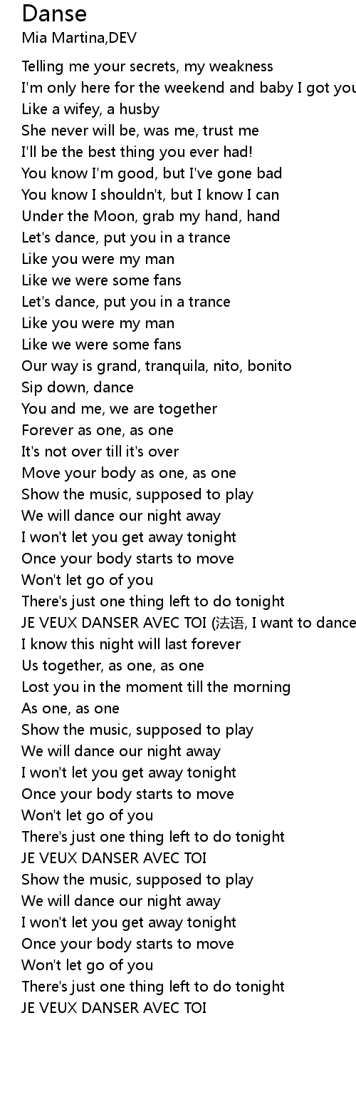 | JE VEUX DANSER AVEC TOI (法语, I want to dance with you) | |