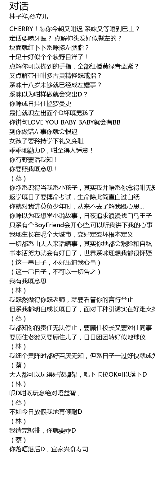 | [01:56.490] | 你净系识得当我系小孩子,其实我并唔系你念得咁无知 |
