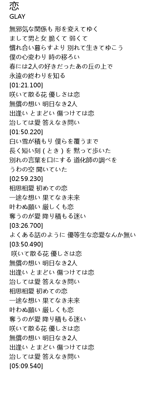 | [02:59.990] | 相思相愛 初めての恋 |
