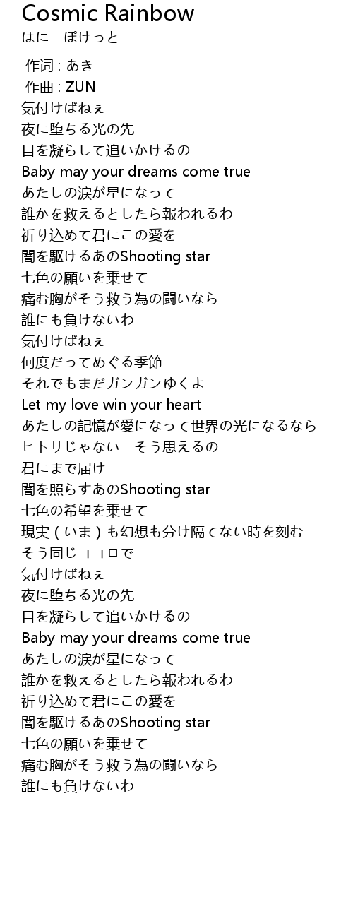 | [01:04.03] | 闇を駆けるあのShooting star |