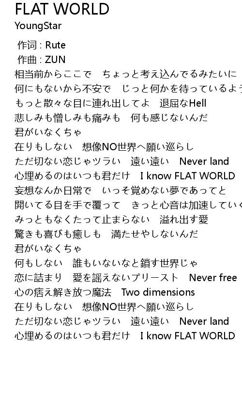 | [03:44.88] | 心埋めるのはいつも君だけ I know FLAT WORLD |