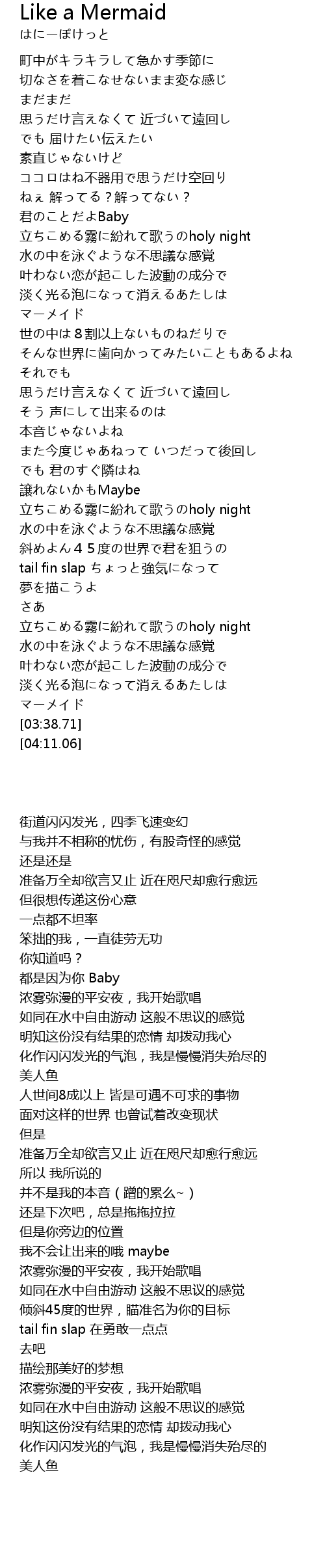 | [03:22.85] | 淡く光る泡になって消えるあたしは |