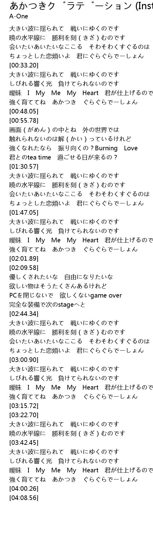 | [01:58.33] | 強く育ててね あかつき ぐらぐらでーしょん |