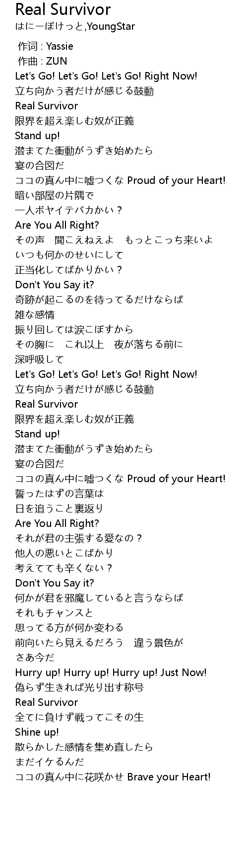 | [02:49.79] | Real Survivor |