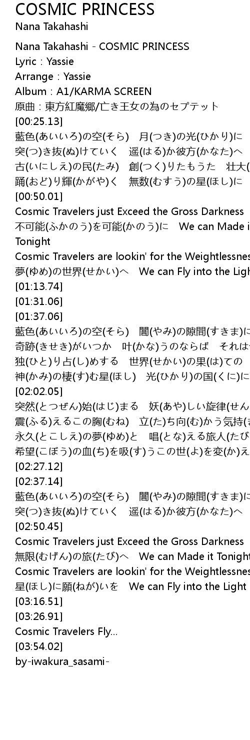| [00:08.73] | Nana Takahashi COSMIC PRINCESS |