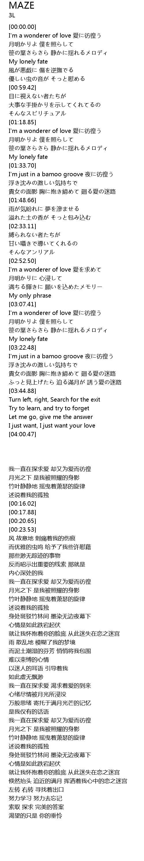 | [03:29.94] | 就让我怀抱着你的脸庞 从此迷失在恋之迷宫 |