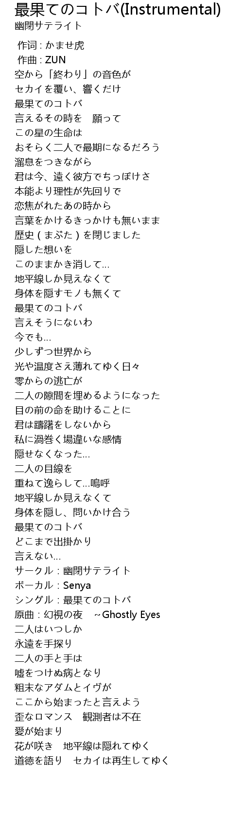 | [04:11.210] | 原曲:幻視の夜 ~Ghostly Eyes |