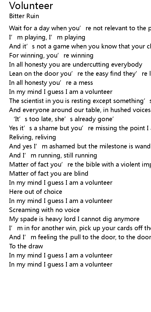 | [00:45.55] | In my mind I guess I am a volunteer |