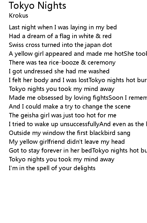 I felt her body and I was lostTokyo nights hot burning lights |