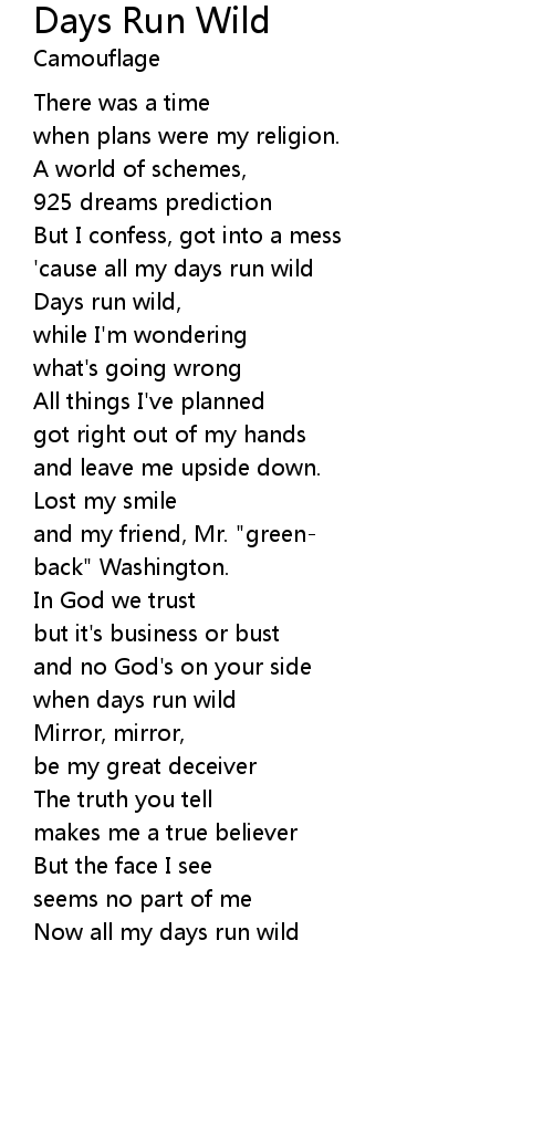 Days run wild, |