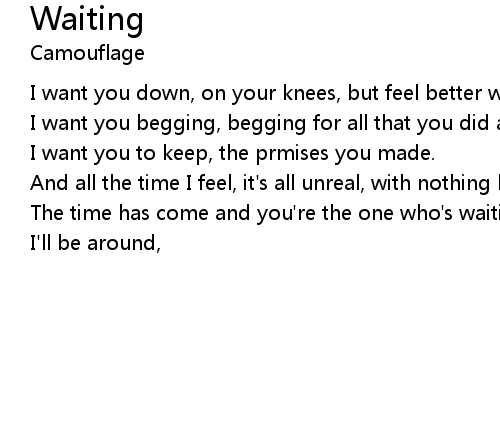 | I want you down, on your knees, but feel better waiting, 'cause | |