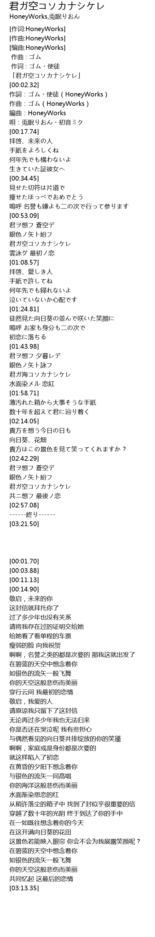 | [00:03.88] | 作詞:ゴム・使徒(HoneyWorks) |