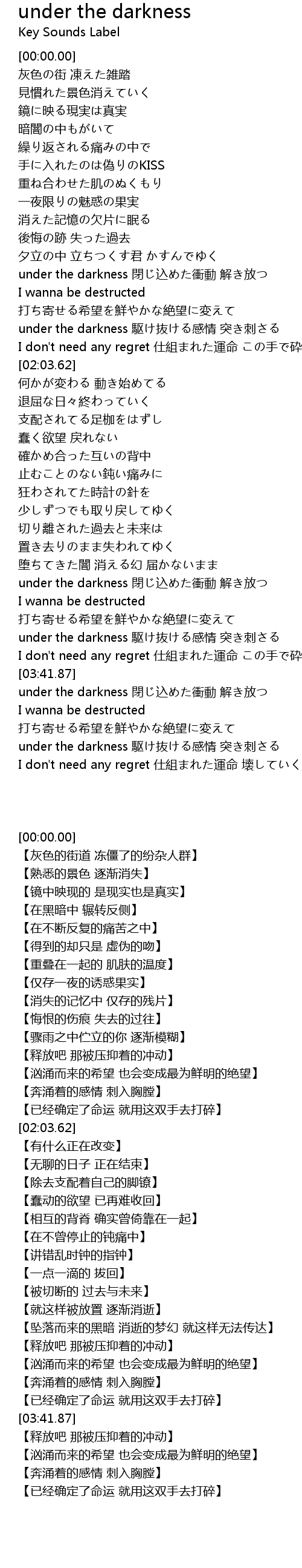 | [04:12.77] | under the darkness 閉じ込めた衝動 解き放つ |
