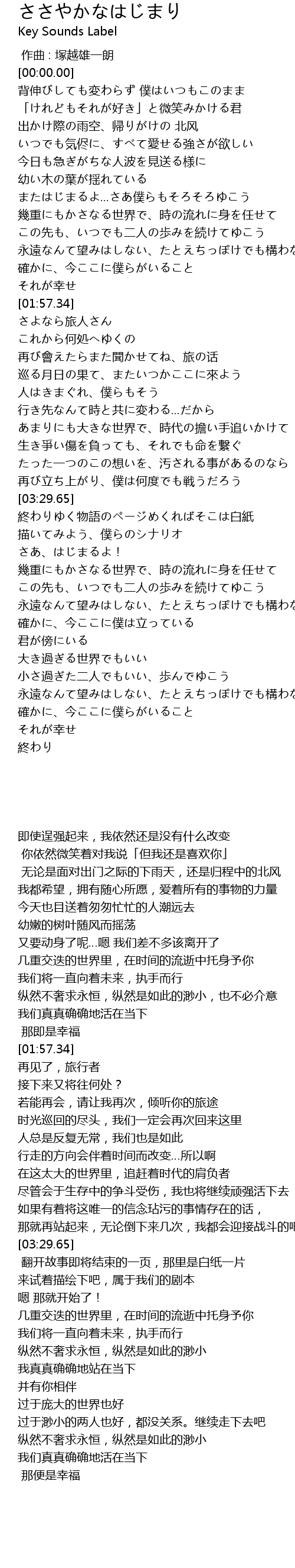 | [04:59.87] | 过于渺小的两人也好,都没关系。继续走下去吧 |
