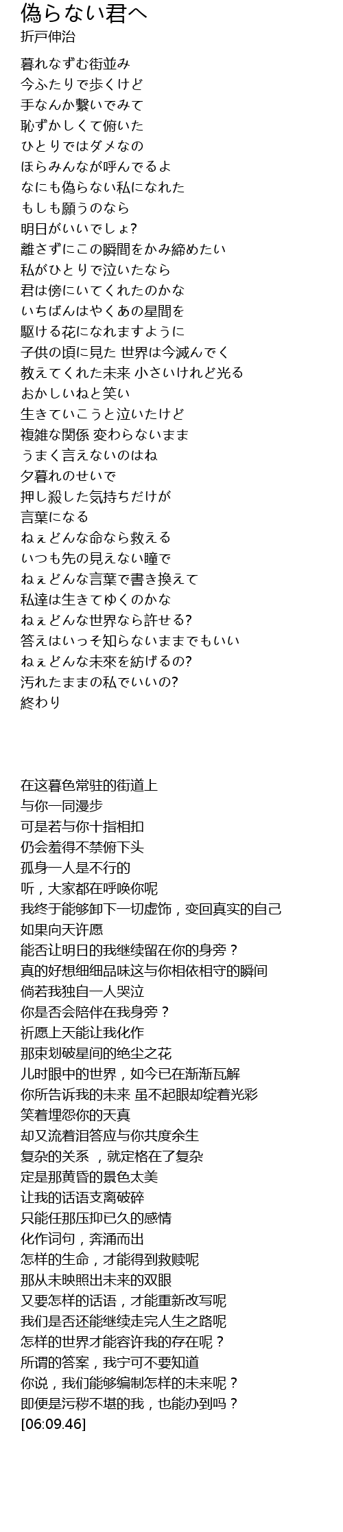 | [05:06.23] | 怎样的世界才能容许我的存在呢? |