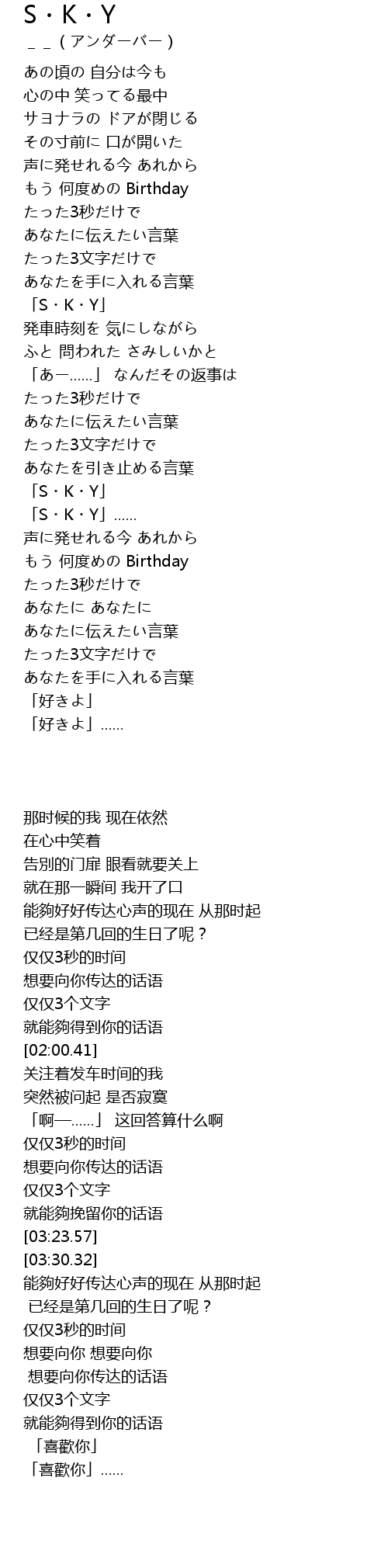 | [02:00.41] | 「S・K・Y」 |
