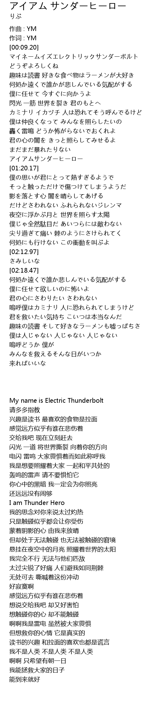 | [01:14.41] | アイアムサンダーヒーロー |