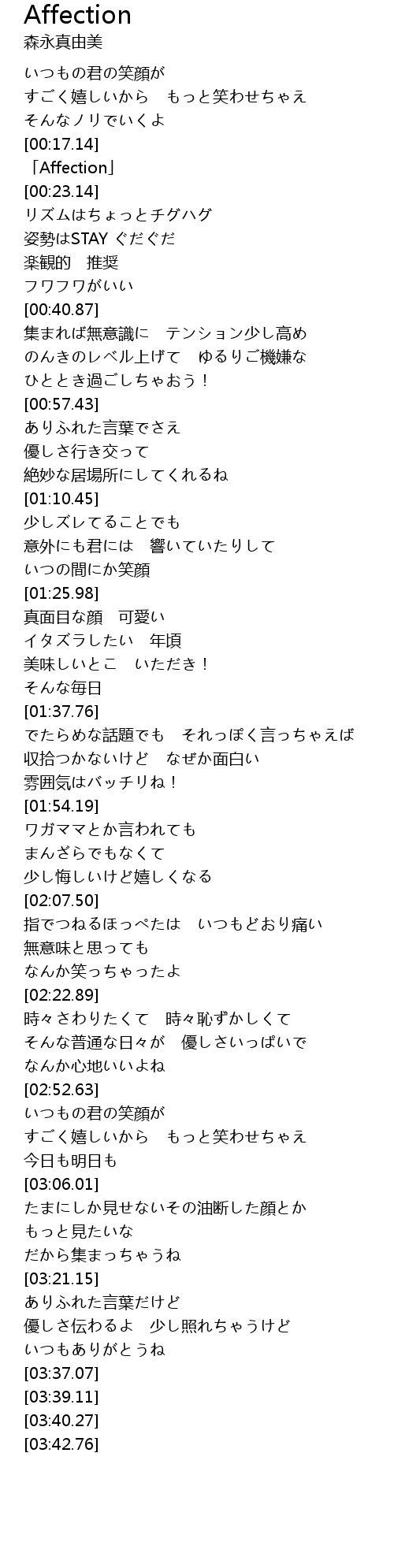 | [03:25.19] | 優しさ伝わるよ 少し照れちゃうけど |
